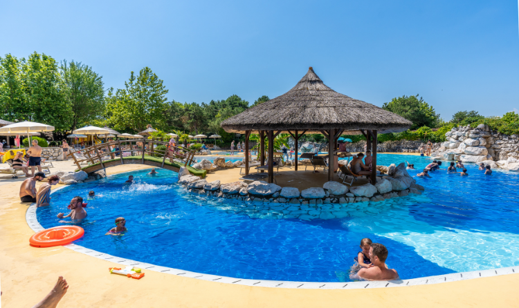 Seit mehreren Jahren wird dieser Campingplatz im selben Atemzug genannt mit den schönsten Campingplätzen Italiens. Ein Grund ist wahrscheinlich die Größe des Campingplatzes; als mittelgroßer Campingplatz hat Camping Tahiti trotzdem mindestens so viel zu bieten wie ein großer Campingplatz. Die Auswahl reicht vom Olympia-Schwimmbad bis hin zur Lagune mit kleinen Wasserfällen, wo große und kleine Wasserratten sich den ganzen Tag amüsieren können. Der Privatstrand des Campingplatzes ist ungefähr 700 m entfernt und ein kleiner Pendelzug bringt Sie auf Wunsch dorthin. Am Strand finden Sie alles für einen unterhaltsamen Tag. Neben einem Strandrestaurant und einem Spielplatz gibt es dort sogar ein kleines Schwimmbad. Wer sich richtig verwöhnen lassen möchte, kann das im Thermalbad tun oder bei einer Schönheitsbehandelung im "Spa Thermae Oasis".
